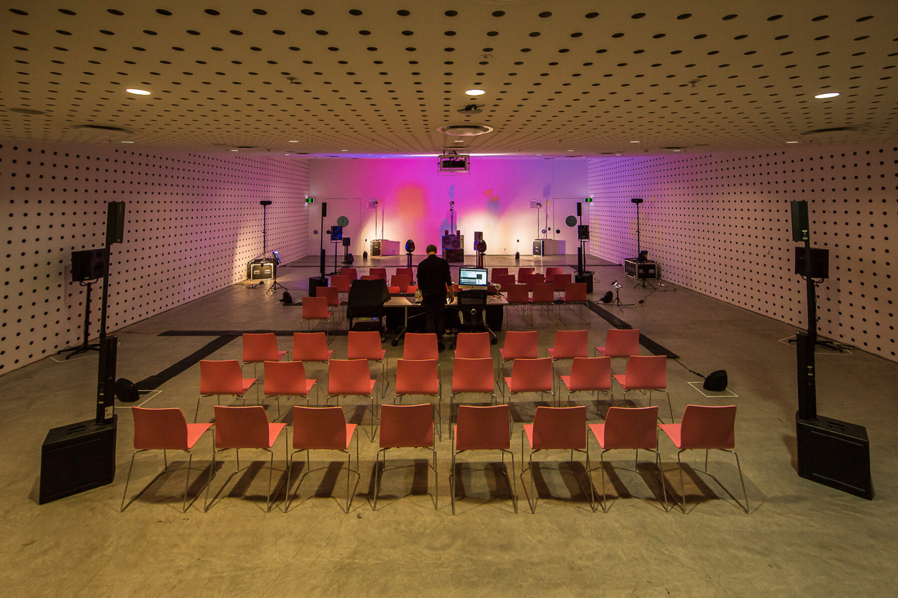 An annual series of speaker orchestra concerts presenting classics from the electroacoustic repertoire, and new works from staff, students and guests. The SIAL Sound Studios speaker orchestra uses up to 32 loudspeakers for electroacoustic music performances in small to large-scale venues. The system is scalable, portable and re-configurable. Each concert setting includes speakers above, around and when possible below the audience to create a theatre of sound or cinema for the ears.